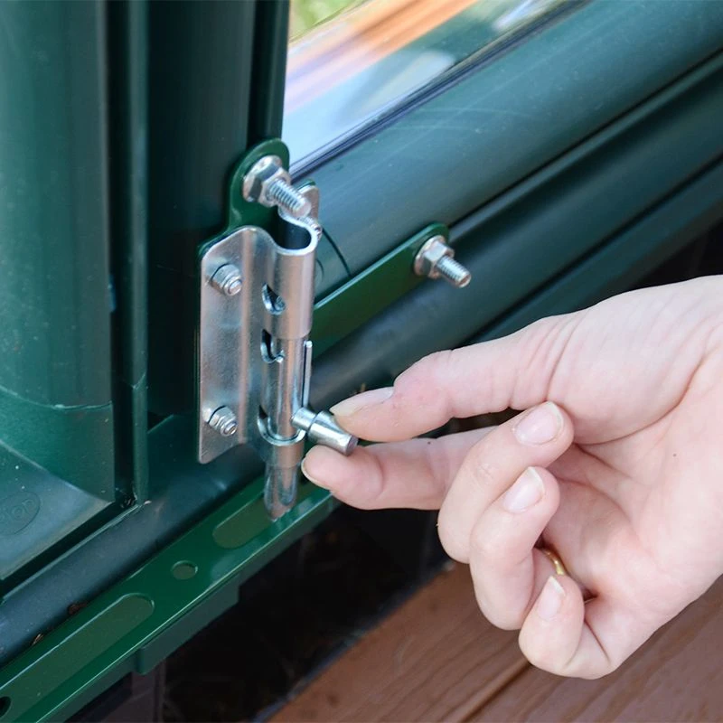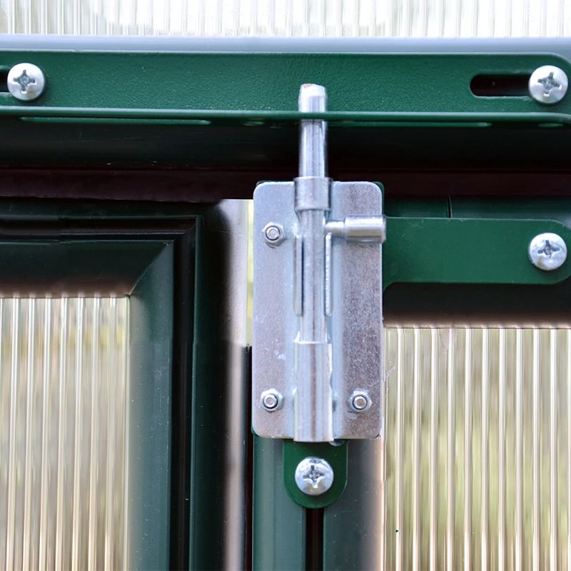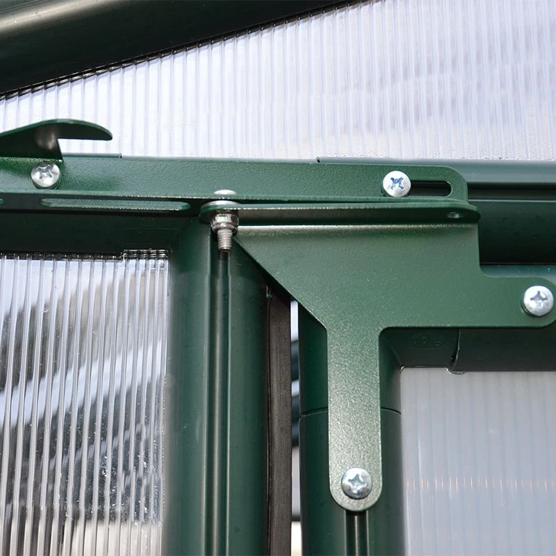 This 8×12 greenhouse is expertly constructed from 4mm twin-wall polycarbonate roof panels and 6mm twin-wall polycarbonate side panels, supported by a UV-protected, green resin frame with pin and lock connectors. Rubber sealing strips provide enhanced insulation, while a reinforcement cable ensures first-rate structural stability.
