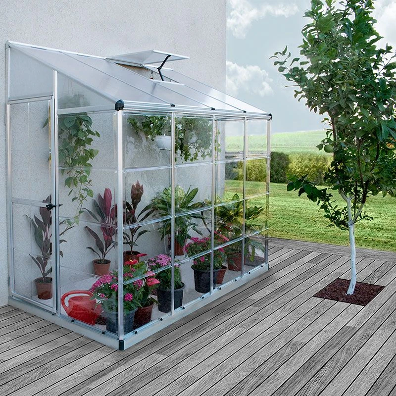 Perfectly sized for a patio area, the 8×4 Palram Canopia Hybrid Lean To Greenhouse (2.4m x 1.22m) has an intelligent design and high-specification build, so will help your plants prosper throughout the year.