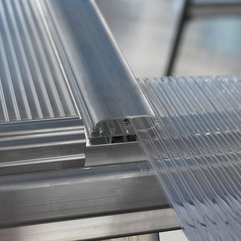 - 4mm twin wall polycarbonate roof panels and crystal-clear 0.7mm polycarbonate wall panels – provides 82% light transmission