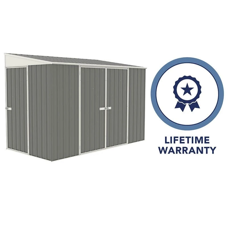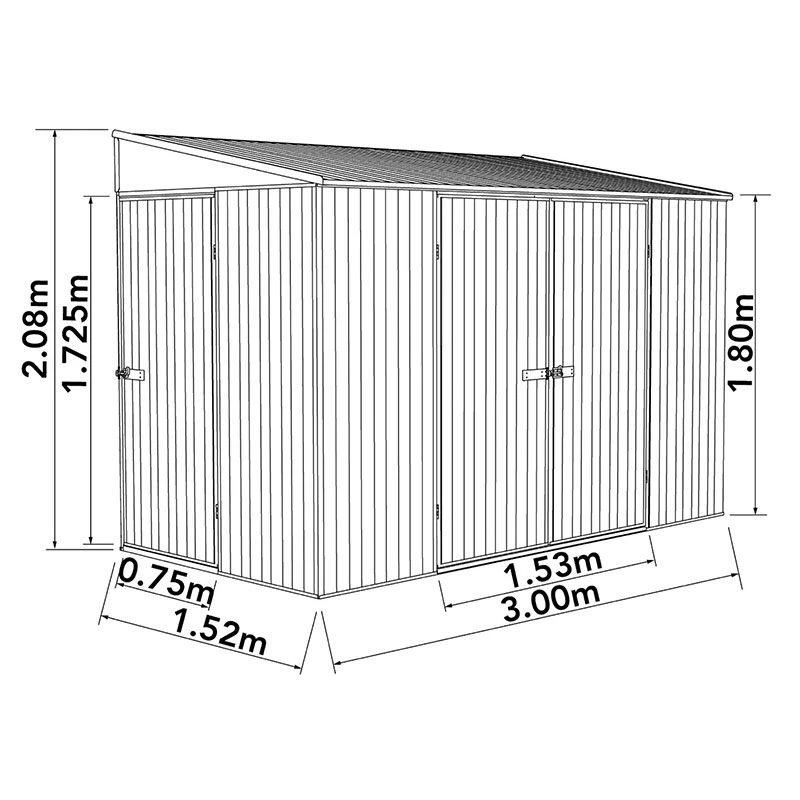 - Features double doors AND single side door – both braced and with galvanised-steel pad bolts (padlocks not supplied)