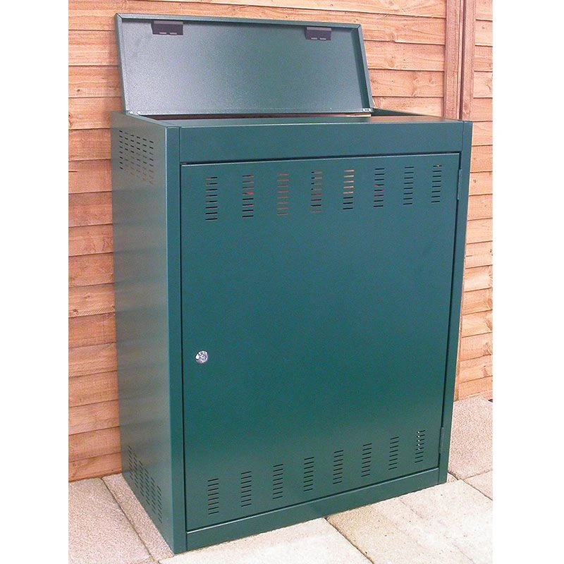 The large single door provides you with excellent access to your gas bottles and features a utility company-style lock to enable your gas supplier to access them too. The top of the unit lifts up so that you can check the regulator or access the shut off valves in case of an emergency, without unlocking the unit itself. Tubular cross rails at the back enable you to chain your cylinders to the unit for even greater security (chain not included), whilst an open back and ventilated sides allow for efficient ventilation and provide optimum gas bottle storage conditions.