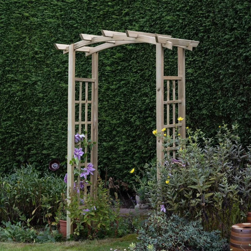 With its attractive trellis sides, intricately-curved domed top and smooth-planed finish, this pergola arch is a real standout garden feature. What’s more, the 4 robust legs and pressure-treated protection ensure this wooden arch is perfectly equipped to withstand whatever nature throws at it and remain a much-loved feature of your garden for many years to come.