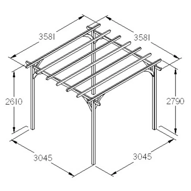 - The perfect size Pergola Kit for your average size garden 3 x 3m (10 x 10ft) and is also available in size 2.1 x 2.1m (7 x 7ft)