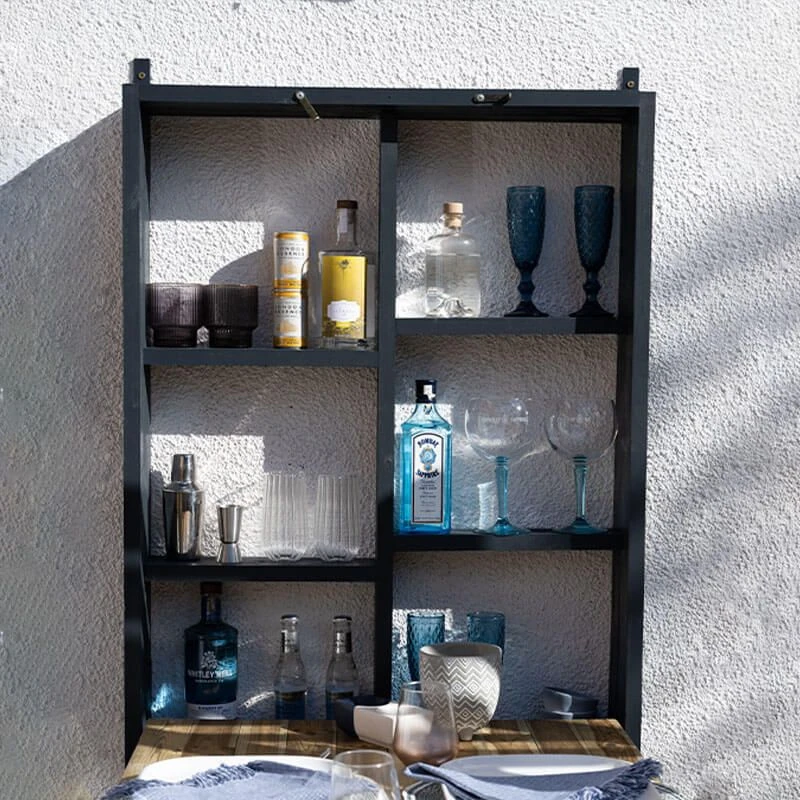 When it’s time to tidy up your garden at the end of the evening, fold the table and frame back onto the drinks cabinet, where they will act as a protective cover to the bottles and glasses. As this garden bar doesn’t take up any ground space, when not in use, it frees up your patio/ balcony for other activities.