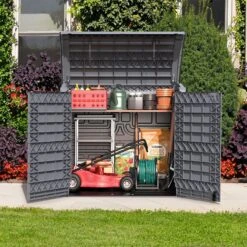4’7 X 2’5 Suncast 507 Litre Ratten-effect Plastic Storage Box – Stoney Grey (1.4m X 0.73m)
