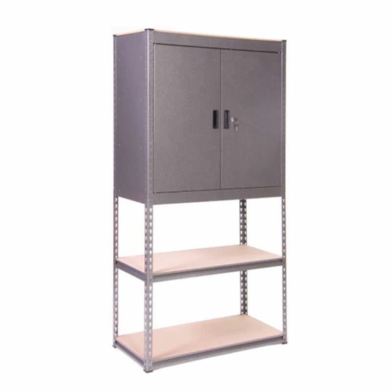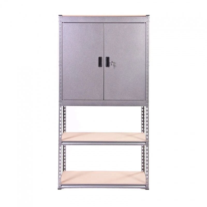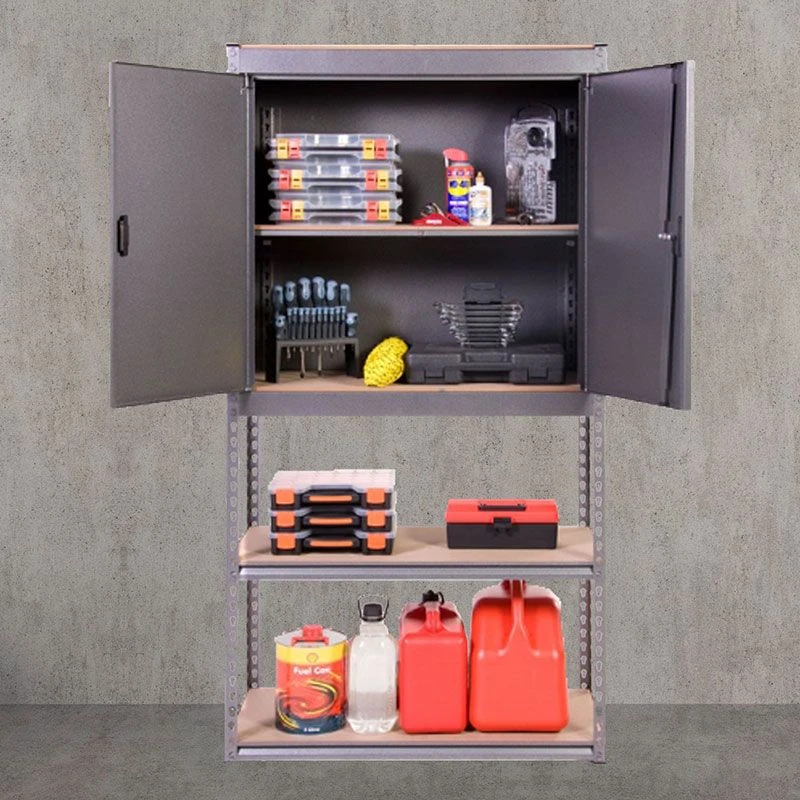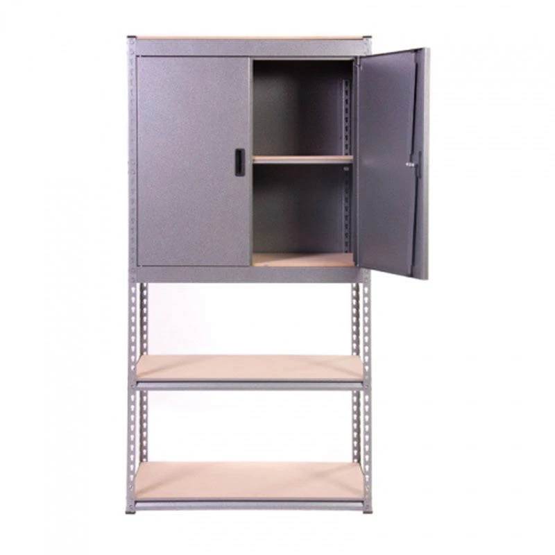 The Globel Silver Vein Heavy Duty Half Cupboard/Half Shelves Storage Unit is an ideal storage solution that can be expanded for a unique design, in the shed, office or garage. The boltless system provides easy construction with just a rubber mallet and no DIY experience required.