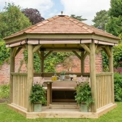 10’x9′ (3×2.7m) Luxury Wooden Garden Gazebo With New England Cedar Roof – Seats Up To 10 People