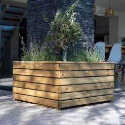 3’11 X 1’4 Forest Linear Tall Wooden Garden Planter With Storage And Wheels (1.2m X 0.4m)