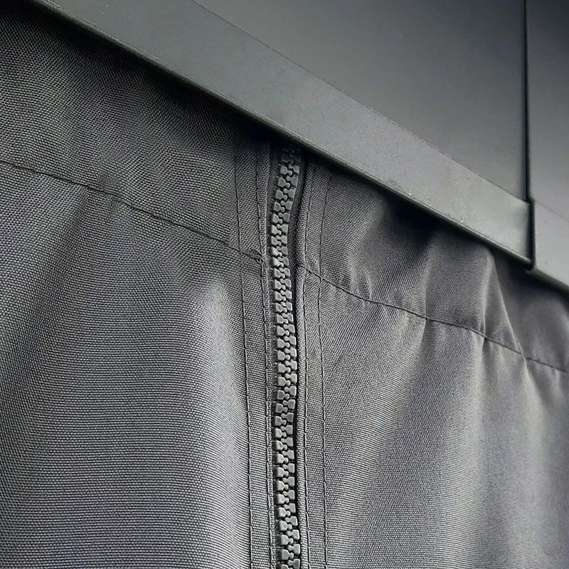 The curtains are all fitted with zips so you can fasten them together for complete privacy. They also include top, middle and bottom ties, allowing you to secure them to the corner posts when they’re not in use.