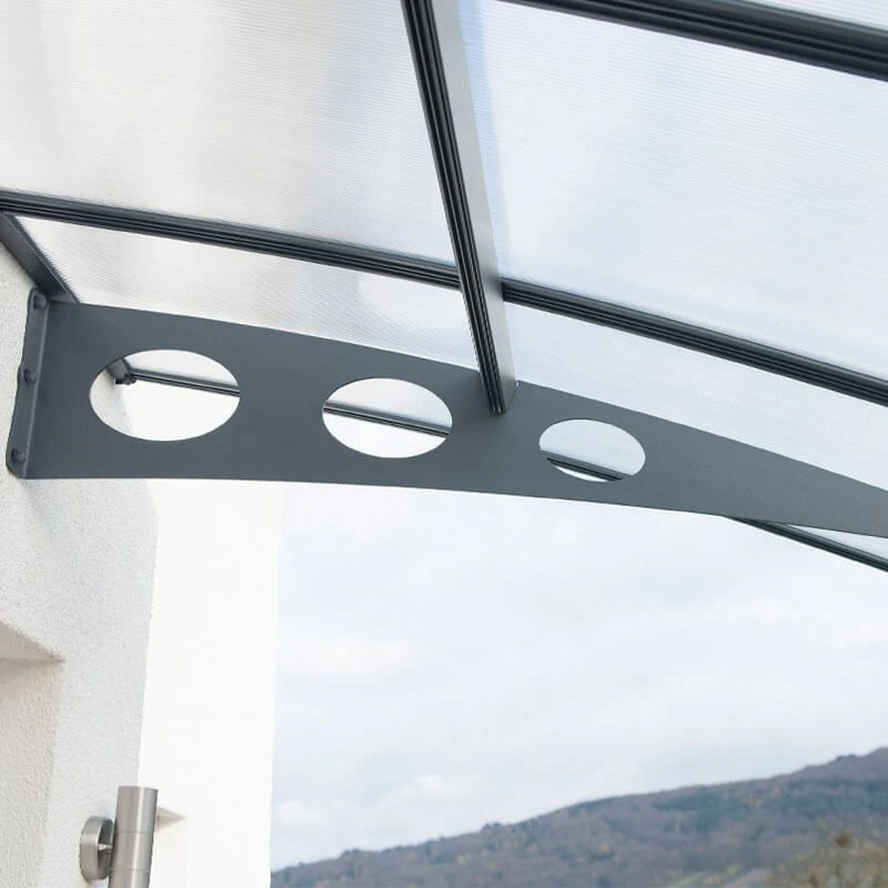 Thanks to a smart and fast locking system, you can assemble this door awning without specialist tools. The panel does not require screws, so there’s no danger, whatsoever, of it developing a leak. Mounting hardware, a pre-cut panel and pre-drilled profiles will all help you achieve a simple, straightforward assembly.
