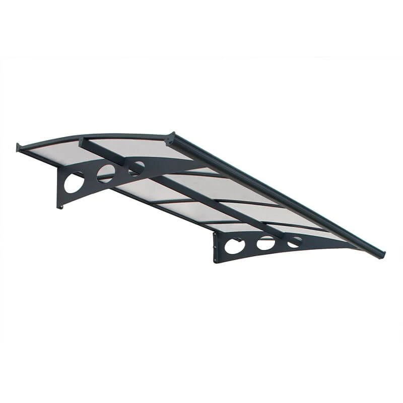 Expertly made using a 6mm twin-wall polycarbonate panel, this front door canopy is virtually unbreakable and allows 80% light transmission. It blocks 100% of harmful UV rays and is completely UV-protected too, so will maintain its attractive appearance above your door without any risk of fracturing, fading or becoming brittle. The aluminium frame and laser-cut, powder-coated galvanised steel support arms are equally stylish and impervious to rust.
