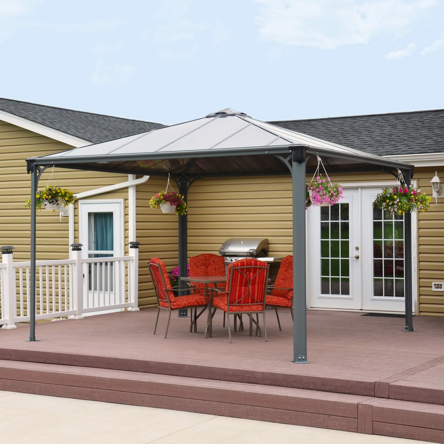 Oozing contemporary style and designed with plenty of clever features, this premium 12×12 gazebo makes the ideal garden shelter, suitable for any special occasion, and comes with a superb 10-year limited warranty.
