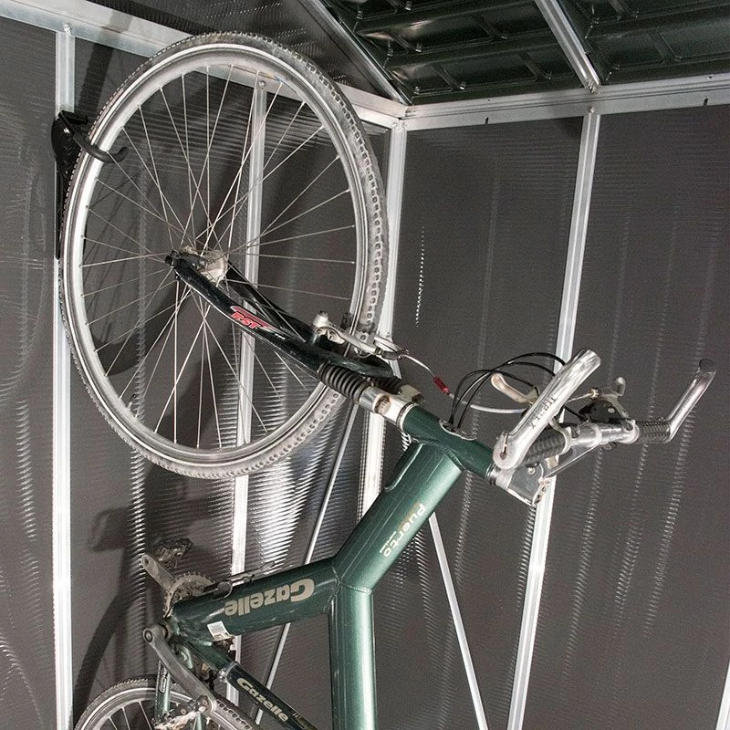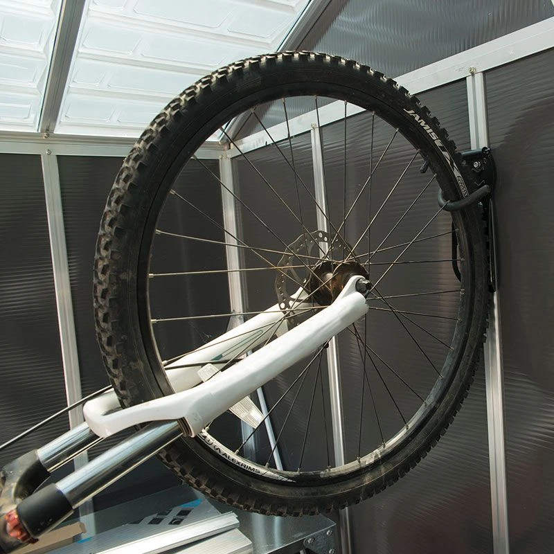 Suitable to use with all Palram Canopia sheds, this vertical bicycle hanger provides long-lasting, space-saving mountain bike storage.