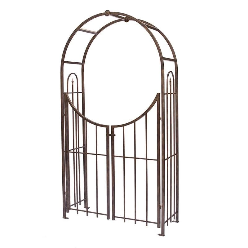 For the perfect entrance into a special part of your garden, choose the eye-catching and expertly crafted Panacea Sunset Metal Garden Arch with Gate in Bronze 7’5 x 4’1.
