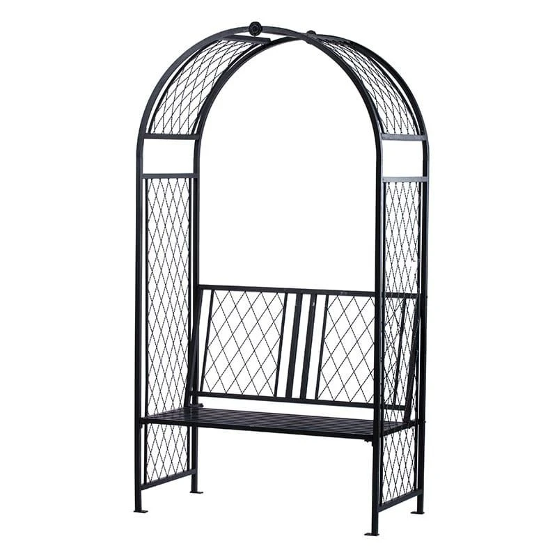 For a contemporary garden arbour with a beautiful trellis design, choose the expertly crafted Panacea Twisted Lattice Metal Garden Arch with Seat 7’3 x 3’9.