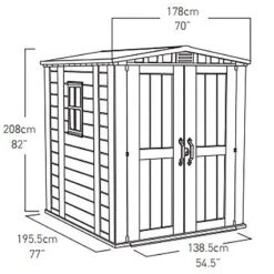 6′ X 8′ Palram Canopia Rubicon Double Door Plastic Garden Shed – Dark Grey (1.85m X 2.28m)
