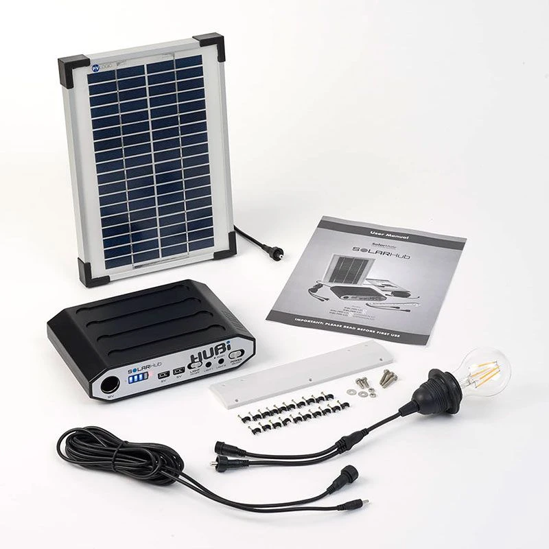 This wonderful solar lighting kit includes 1 x 5w solar panel, 1 x panel bracket, 1 x 2Ah battery hub, 1 x 5m hub/ LED cable, 1 x ceiling bulb holder, 1 x 3.5w vintage bulb, 1 x fixing pack and a simple step-by-step guide.