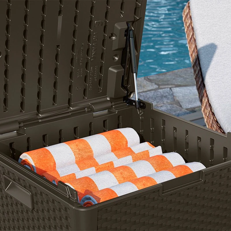 With a generous 227-litre capacity and contemporary java wicker design, this deck box is not only incredibly useful, it is visually appealing too.