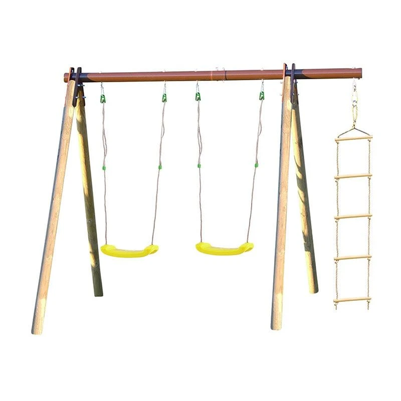 - Features 2 swings and a cargo rope ladder