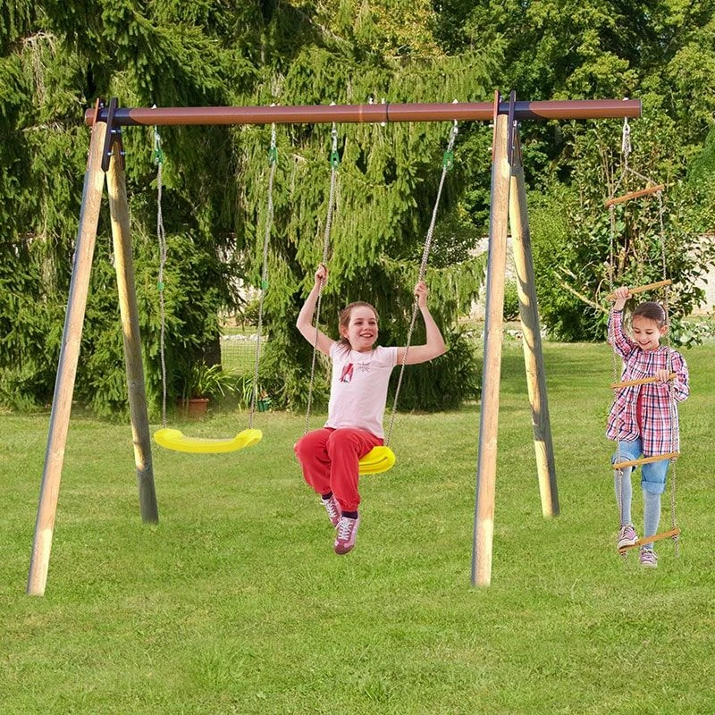 Your children will be incredibly excited when you show them the Trigano Piki Kids Wooden Double Garden Swing with Rope Ladder, which is designed and manufactured to meet European safety standards and represents outdoor play equipment at its finest.